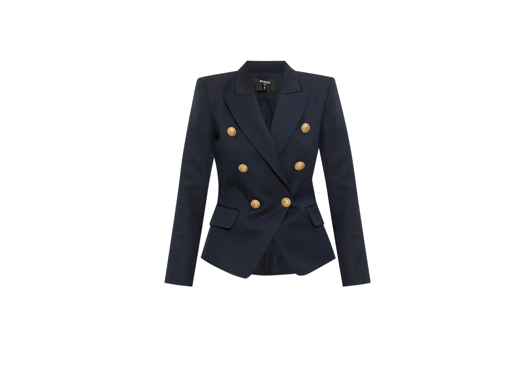 Double-breasted blazer by Balmain, crafted from 100% virgin wool.