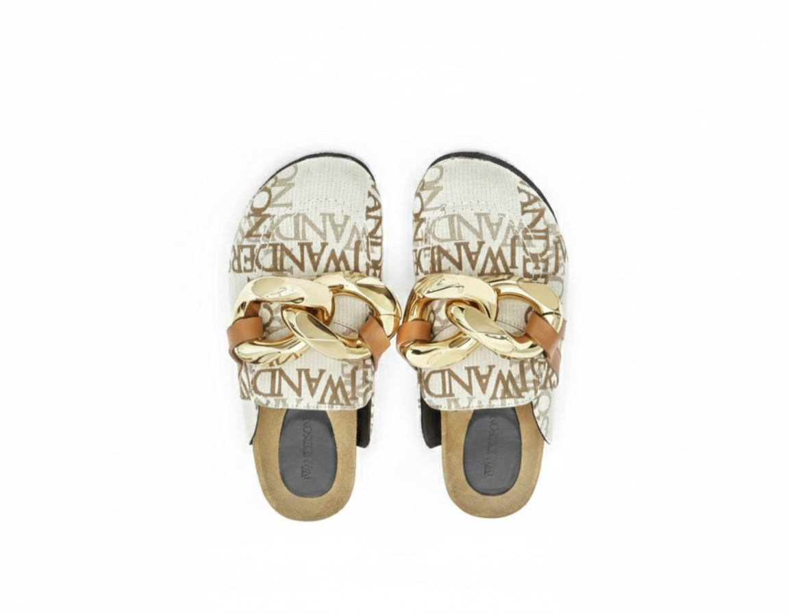 A signature JW Anderson mule featuring the brand’s iconic chain detail and logo grid pattern. Crafted in Italy, this slip-on style adds a subtle statement to relaxed, everyday looks.