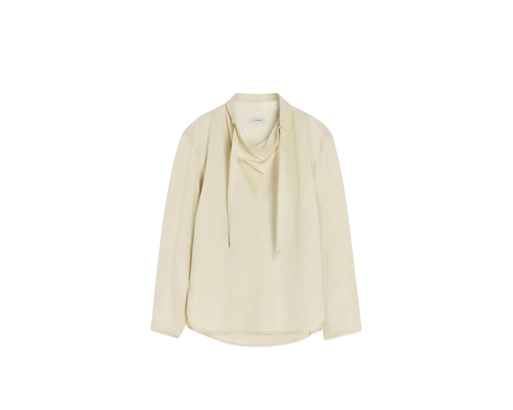 High neck drawstring blouse by LEMAIRE, designed in an off white satin finish.