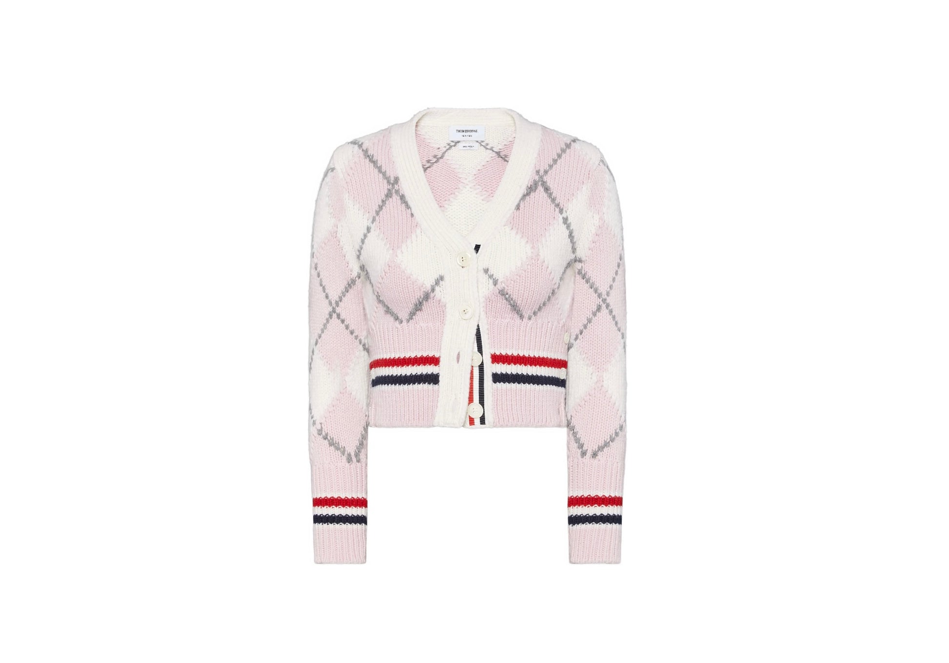 Argyle-intarsia merino-wool cardigan by Thom Browne, made in Italy.